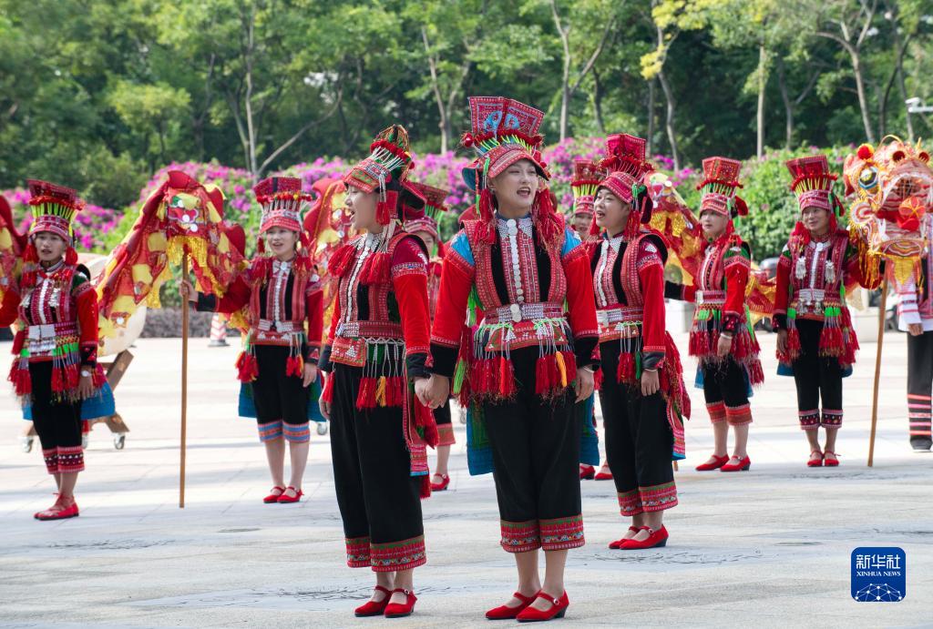8月15日,參加第11屆中國·南亞?wèn)|南亞藝術(shù)周開(kāi)幕式的演員在進(jìn)行表演。