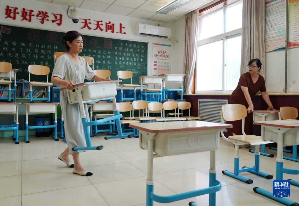 8月14日,北京市門(mén)頭溝區妙峰山民族學(xué)校的工作人員在布置教室。
