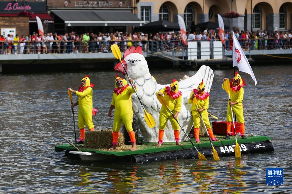 當日,“浴缸劃船節”在比利時(shí)迪南舉行。該活動(dòng)始于1982年,已成為比利時(shí)熱鬧的夏季節慶活動(dòng)之一。今年的“浴缸劃船節”主題為“默茲河上的農場(chǎng)”,參加者圍繞浴缸打造稀奇古怪的船只,比拼設計創(chuàng )意及現場(chǎng)表演。