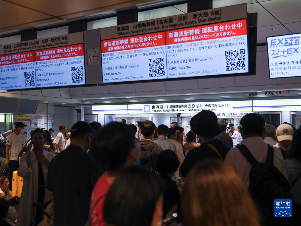 當日,受今年第7號臺風(fēng)“蘭恩”影響,日本東海道新干線(xiàn)列車(chē)全線(xiàn)停運,導致大量旅客滯留。