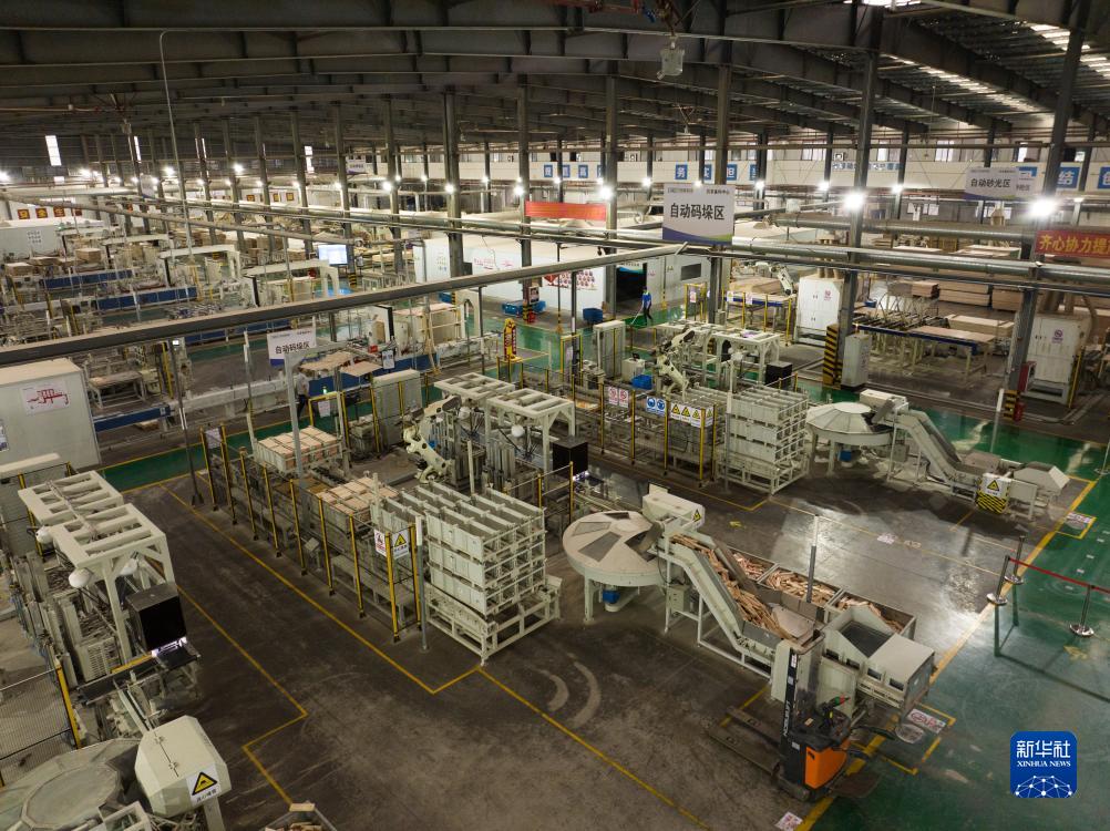 8月14日,在江西省贛州市南康家具智能備料中心的自動(dòng)碼垛區里,機器在加工木料。