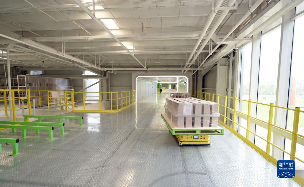8月15日,在江西省贛州市南康區美克美家美克數創(chuàng )(贛州)家居智造有限公司,機器人自動(dòng)運送木料。