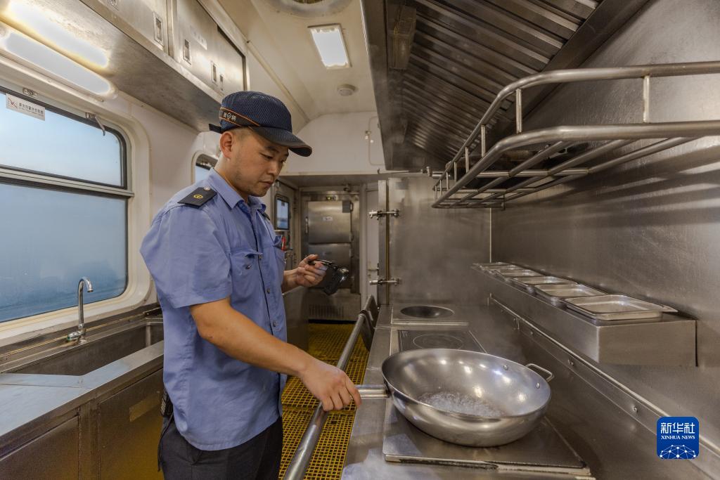 8月15日,重慶車(chē)輛段工作人員在重慶西客車(chē)整備所對列車(chē)餐車(chē)電器設備進(jìn)行檢測調試。