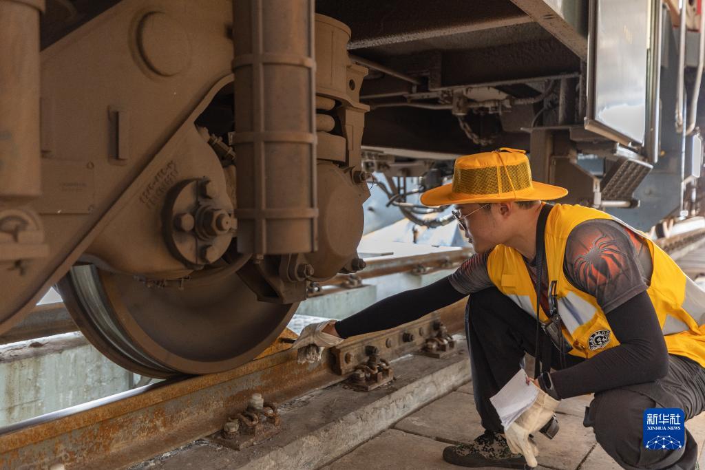 8月15日,重慶西站運轉車(chē)間調車(chē)工作人員在重慶西客車(chē)整備所對入庫列車(chē)安放止輪器。