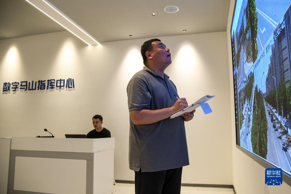 8月15日,馬山鎮工作人員通過(guò)數字技術(shù)查看社區情況。