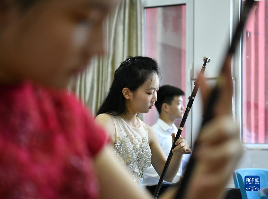 8月16日,參賽選手在演奏二胡。