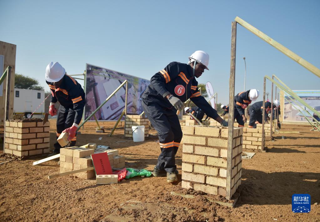 8月15日,在博茨瓦納莫舒帕,當地員工在正太集團舉辦的員工技能大賽上進(jìn)行砌墻比賽。
