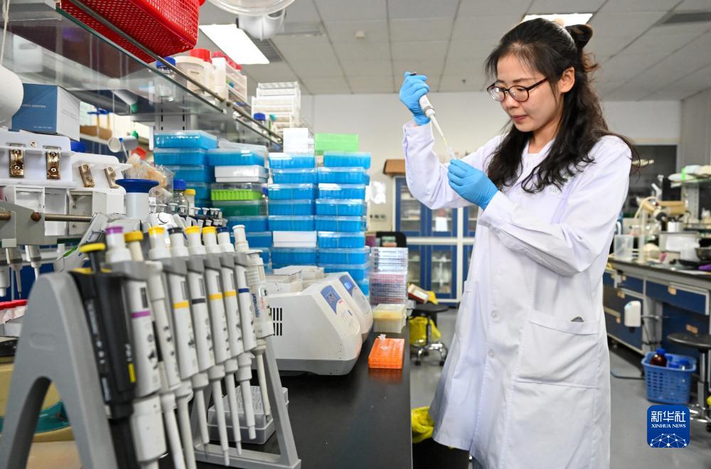 在中國科學(xué)院天津工業(yè)生物技術(shù)研究所實(shí)驗室,宋皖博士在做人工合成己糖實(shí)驗(8月13日攝)。