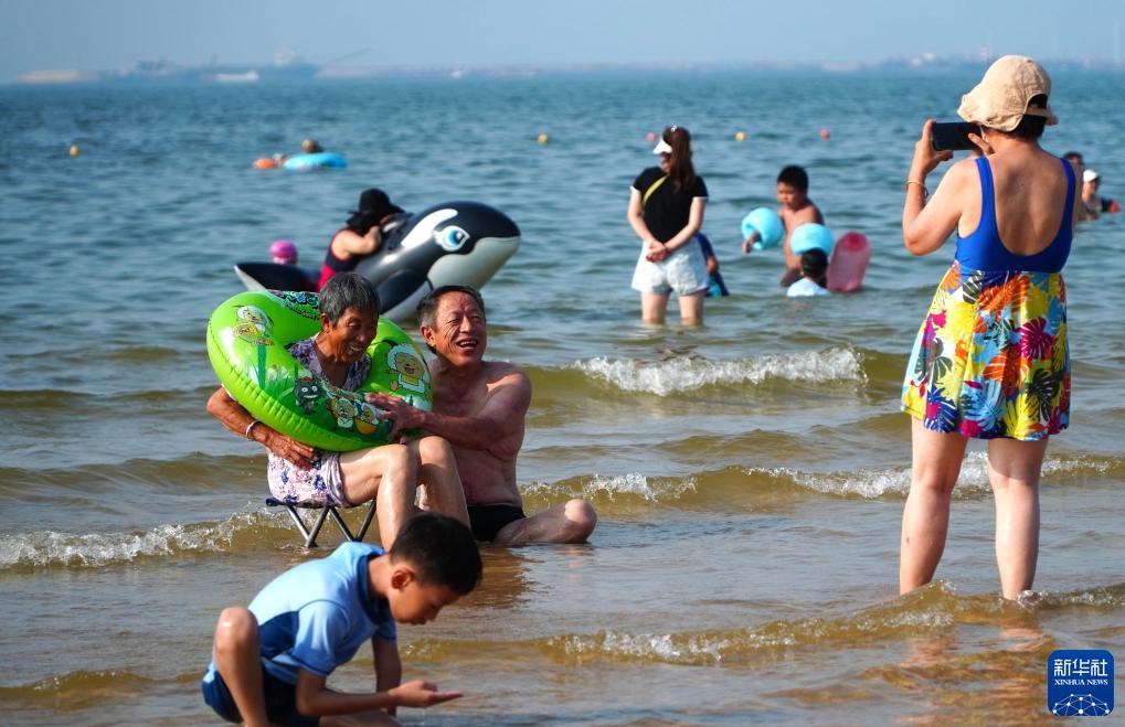 8月16日,游客在山東省萊州市三山島的海濱風(fēng)景區游玩。