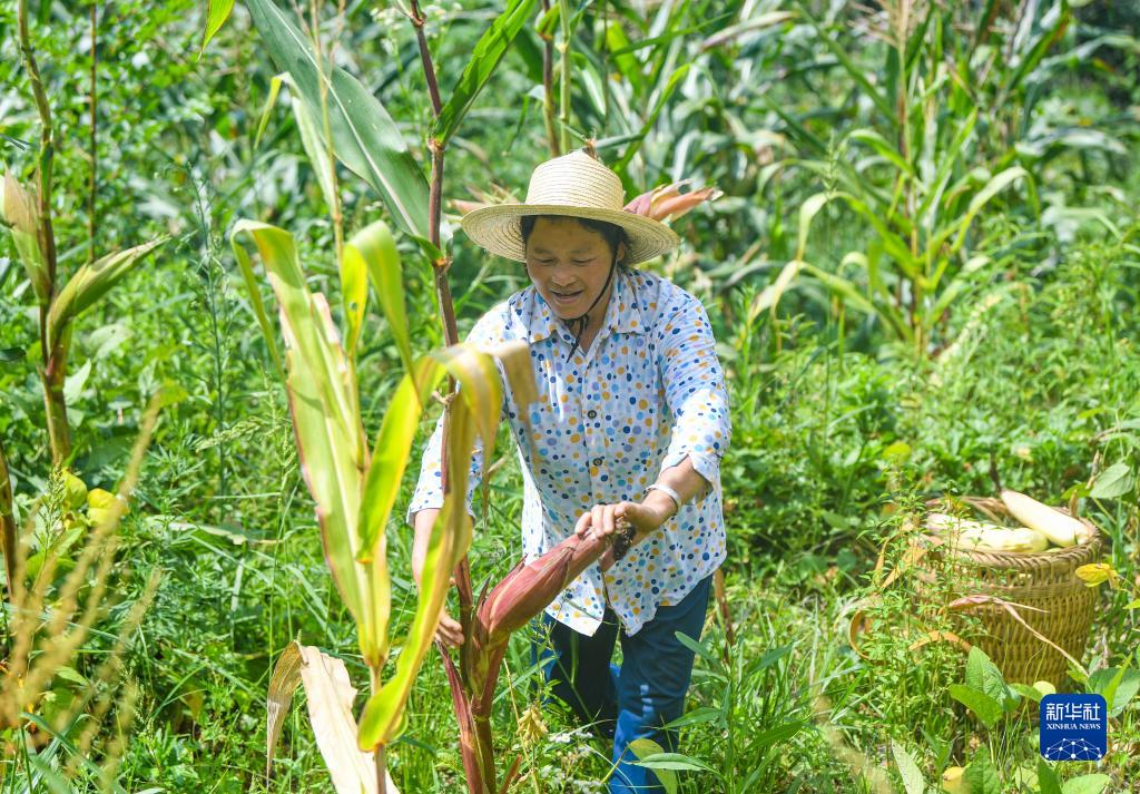 8月16日,村民在重慶市石柱土家族自治縣王家鄉光華村采摘玉米。