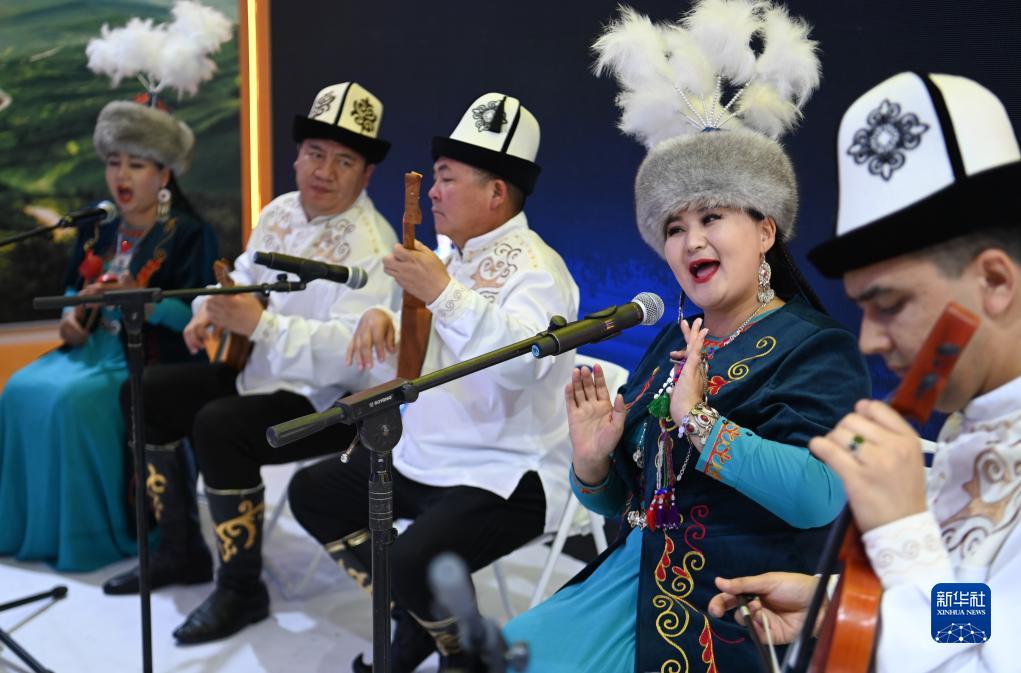 8月17日,演員在交流合作館新疆維吾爾自治區展區演唱歌曲。