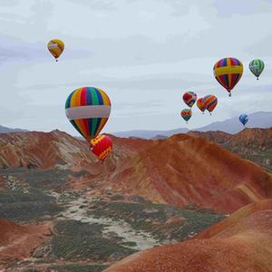 當日,甘肅張掖第三屆張掖七彩丹霞熱氣球嘉年華在七彩丹霞景區拉開(kāi)帷幕。來(lái)自全國各地的熱氣球運動(dòng)員駕乘熱氣球,在七彩丹霞上空進(jìn)行飛行表演,上演熱氣球與丹霞的美麗邂逅。
