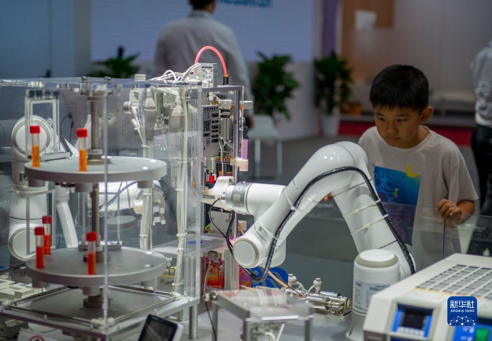 這是8月17日在2023世界機器人大會(huì )現場(chǎng)拍攝的智能灌液演示裝置。
