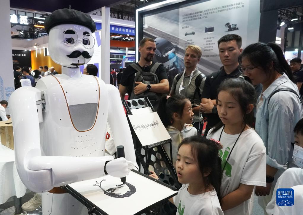這是在2023世界機器人大會(huì )現場(chǎng)拍攝的畫(huà)像機器人(8月17日攝)。