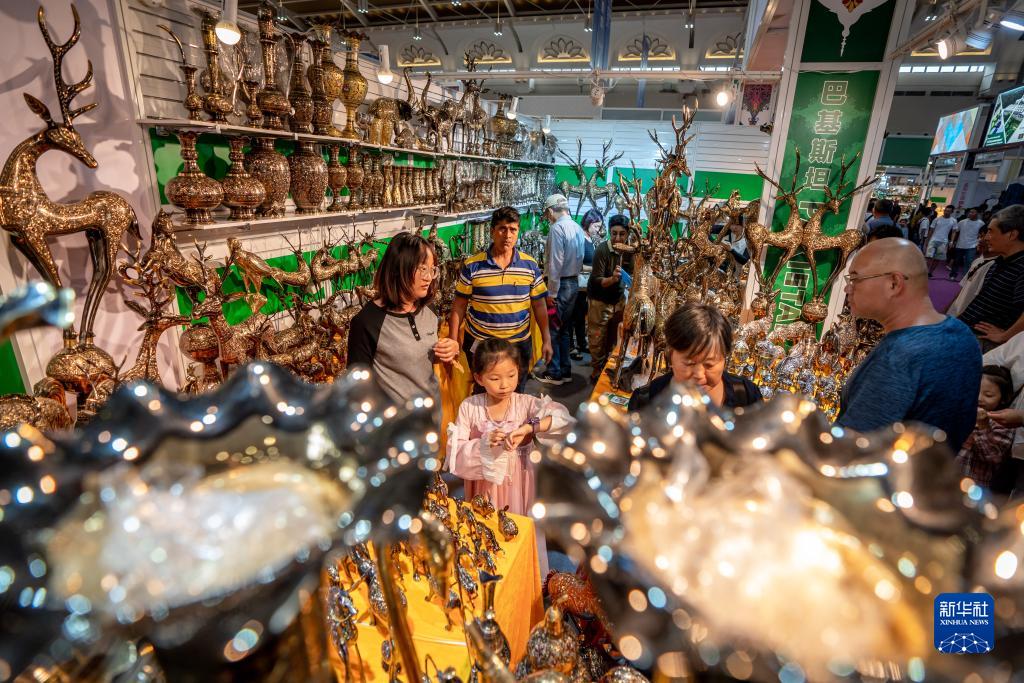 8月18日,參觀(guān)者在巴基斯坦展區參觀(guān)、選購商品。