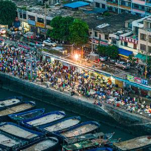 8月18日清晨,客商在北海電建漁港購買(mǎi)海鮮(無(wú)人機照片)。