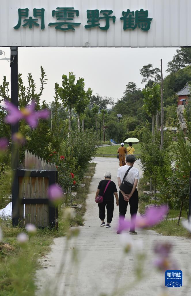 8月17日,在汝州市大峪鎮袁窯村,入住客人在云堡妙境民宿區內游覽。