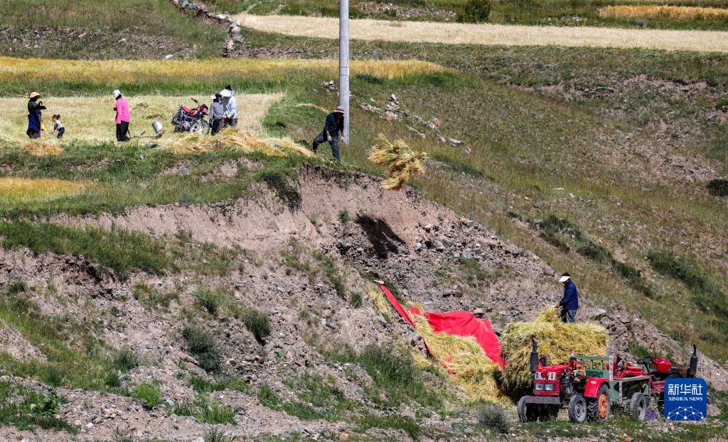 目前,西藏各地進(jìn)入秋收時(shí)節。西藏昌都市邊壩縣的農民抓緊收割青稞和牧草,確保顆粒歸倉。