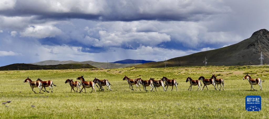 奔跑在措勤縣草原上的藏野驢(8月18日攝)。