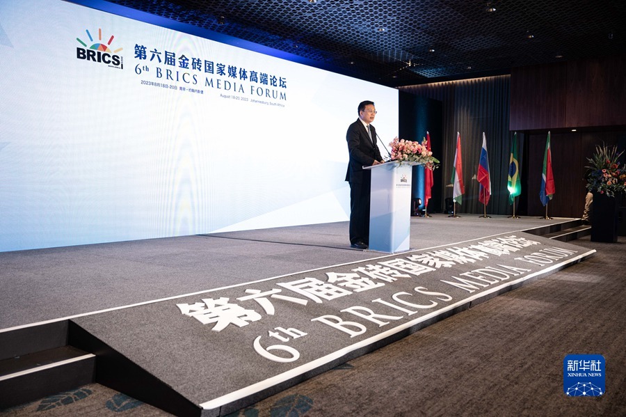 8月19日,在南非約翰內斯堡,金磚國家媒體高端論壇執行主席、新華通訊社社長(cháng)傅華在開(kāi)幕式上致辭。