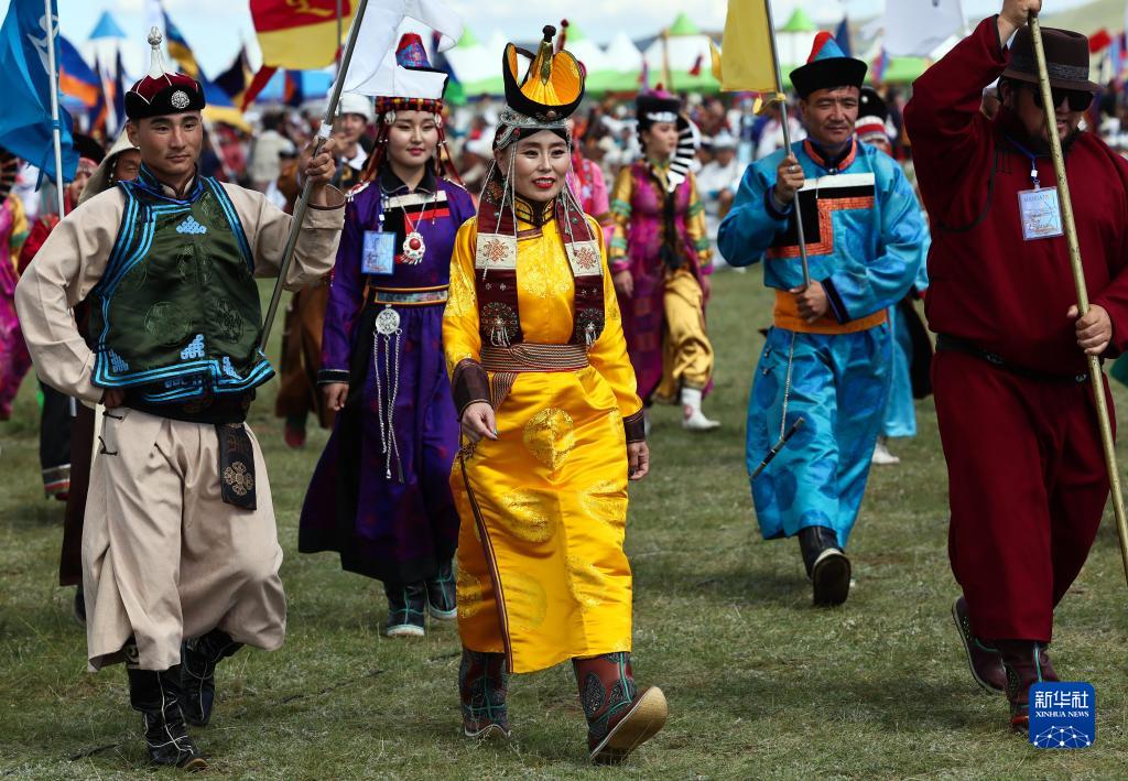 這是8月18日在蒙古國泰吉山谷拍攝的文化節開(kāi)幕式入場(chǎng)式。