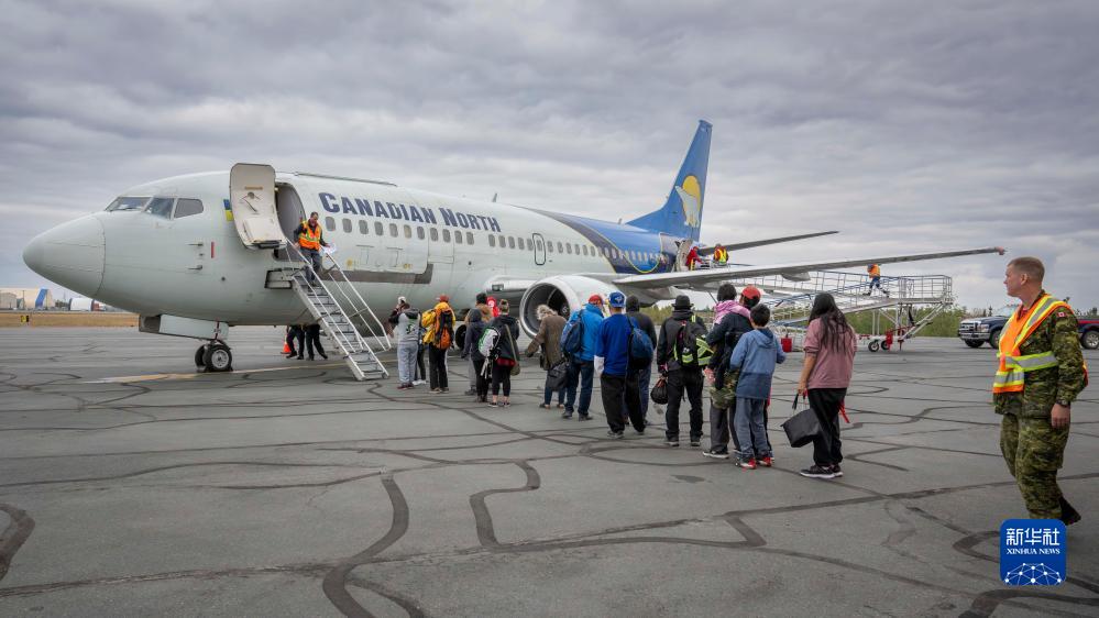 8月18日,加拿大武裝部隊人員在西北地區耶洛奈夫機場(chǎng)協(xié)助居民疏散。