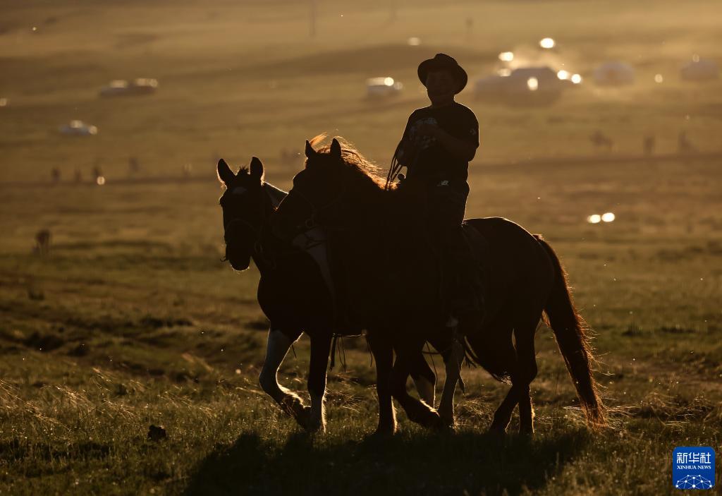 散去了白天的喧囂,距離蒙古國首都烏蘭巴托40多公里的泰吉山谷又恢復了往日的寧靜,夕陽(yáng)給山谷和牧場(chǎng)披上了金色的盛裝。參加2023年度“游牧民族”世界文化節的人們,有的選擇在此宿營(yíng),等待次日繼續參加文化節的各種活動(dòng),有的選擇駕車(chē)返回烏蘭巴托或附近的牧點(diǎn)。牧人們將放牧的馬匹收攏并帶回家中,不知疲倦的孩子們繼續在夕陽(yáng)中嬉戲打鬧。