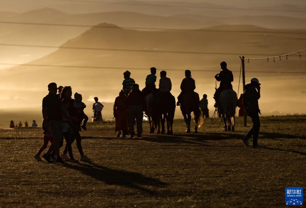 散去了白天的喧囂,距離蒙古國首都烏蘭巴托40多公里的泰吉山谷又恢復了往日的寧靜,夕陽(yáng)給山谷和牧場(chǎng)披上了金色的盛裝。參加2023年度“游牧民族”世界文化節的人們,有的選擇在此宿營(yíng),等待次日繼續參加文化節的各種活動(dòng),有的選擇駕車(chē)返回烏蘭巴托或附近的牧點(diǎn)。牧人們將放牧的馬匹收攏并帶回家中,不知疲倦的孩子們繼續在夕陽(yáng)中嬉戲打鬧。