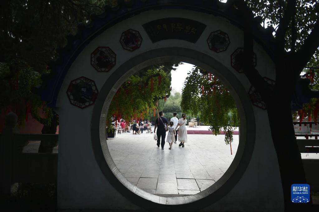 8月19日,游人在中國翰園碑林景區游覽。
