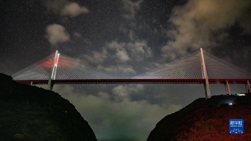 從馬選軍家陽(yáng)臺拍攝的杭瑞高速北盤(pán)江大橋夜景(8月16日攝)。