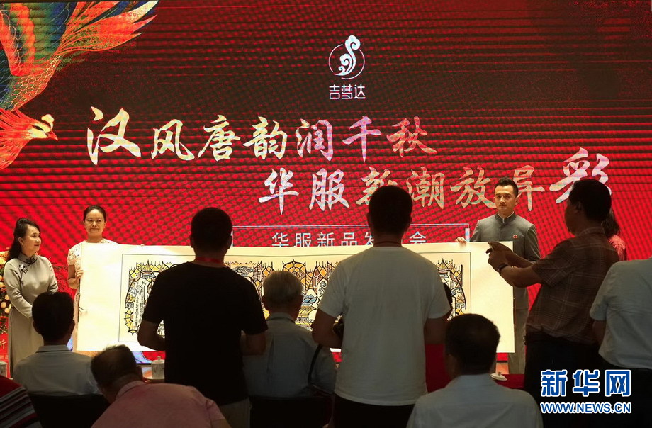 ??? 8月20日,“漢風(fēng)唐韻潤千秋 華服新潮放異彩”華服新品發(fā)布會(huì )在京舉行,由北京吉夢(mèng)達文化創(chuàng )新設計的20款華服精彩亮相。新品華服表現岀中華民族端莊、高雅、大氣、沉穩、向上的時(shí)代精神。新華網(wǎng) 李清 攝