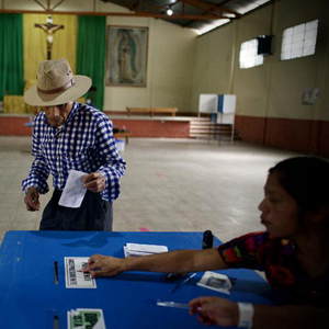 8月20日,在危地馬拉首都危地馬拉城,一名選民在投票站投票。