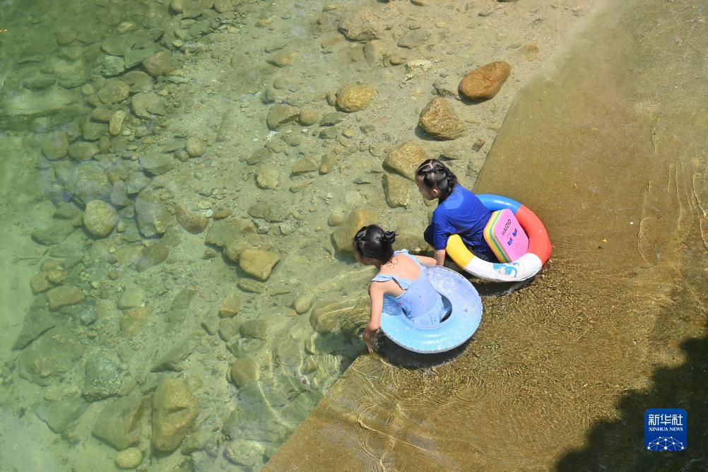 小朋友在融水苗族自治縣香粉鄉雨卜村戲水消暑(8月20日攝)。近年來(lái),雨卜村充分利用粵桂協(xié)作幫扶資金,通過(guò)整治河道、修繕古建筑等,發(fā)展鄉村旅游產(chǎn)業(yè),打造鄉村旅游示范村。