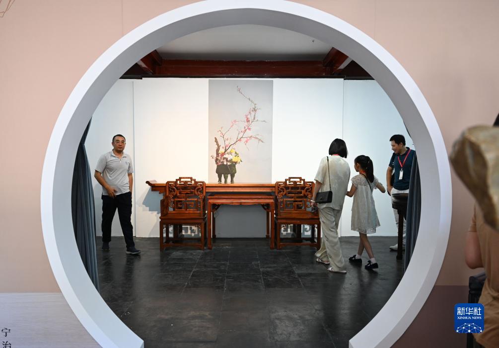 8月21日,觀(guān)眾參觀(guān)展出的家具。