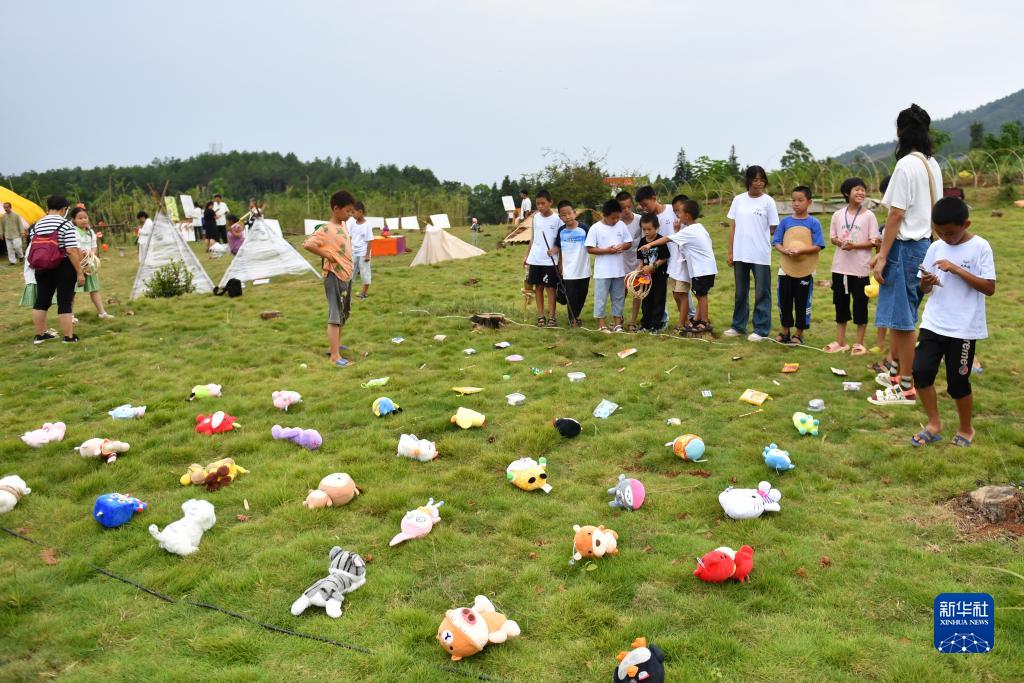 8月20日,孩子們在2023大元社鄉村青少年藝術(shù)節中玩套圈游戲。