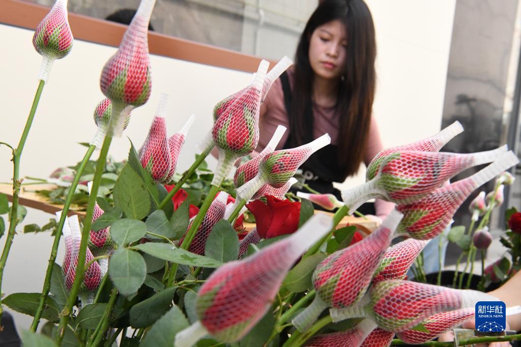 “七夕”將至,鮮花市場(chǎng)呈現俏銷(xiāo)勢頭,不少商家精心準備花卉產(chǎn)品,吸引顧客前來(lái)購買(mǎi)。