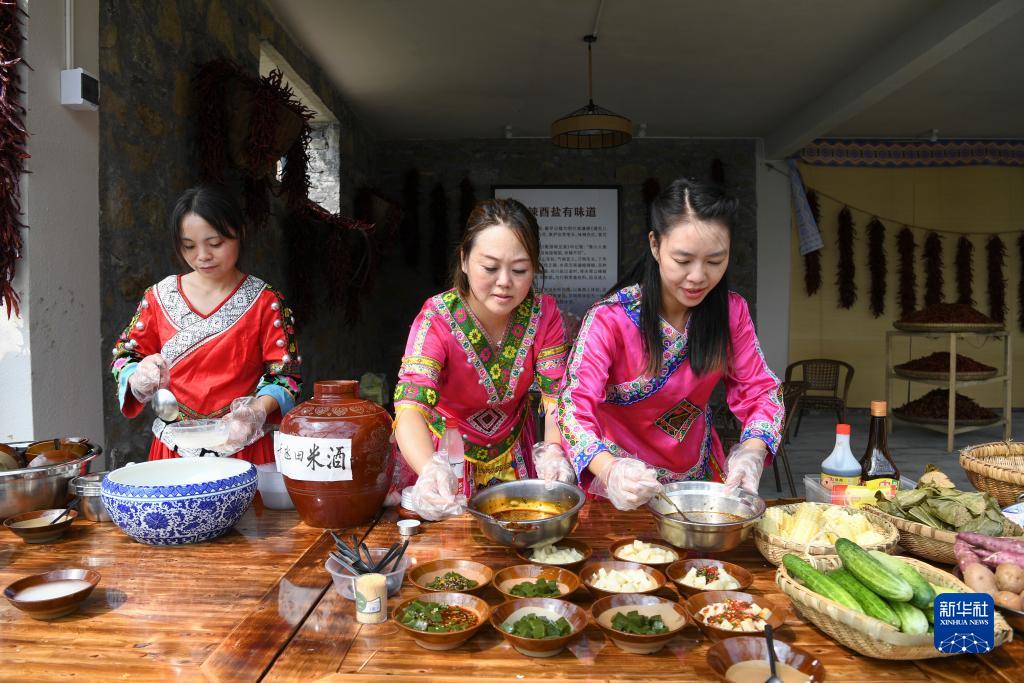 8月20日,酉陽(yáng)縣丁市鎮中壩村一小吃店工作人員在準備特色美食。