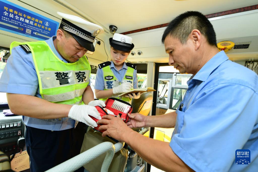 秋季開(kāi)學(xué)臨近,多地組織民警對轄區內校車(chē)進(jìn)行安全檢查,及時(shí)排除隱患,確保學(xué)生乘車(chē)安全。