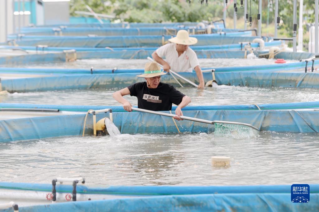 8月22日,在德清縣下渚湖街道和睦村“數字漁倉”養殖基地,工人在進(jìn)行日常養護作業(yè)。