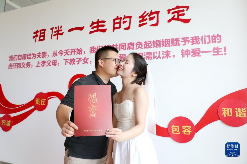 當日是七夕,這一天是我國民間傳說(shuō)中牛郎織女鵲橋相會(huì )的日子,許多新人選擇在這一天登記結婚。