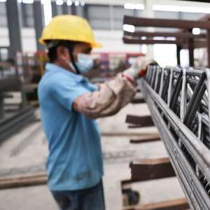 8月22日,海南定安縣新竹鎮華潤智筑科技(定安)裝配式示范產(chǎn)業(yè)基地工人在作業(yè)。