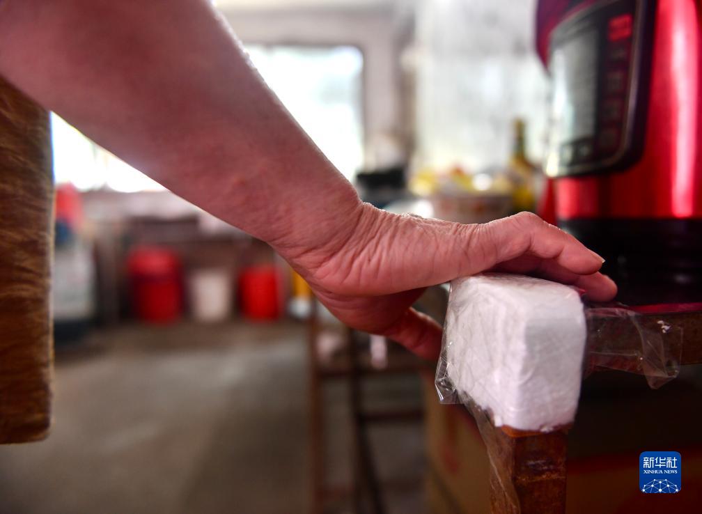 這是鄭其輝在家中桌角上粘貼的泡沫護欄,保護妻子不被磕碰(8月18日攝)。
