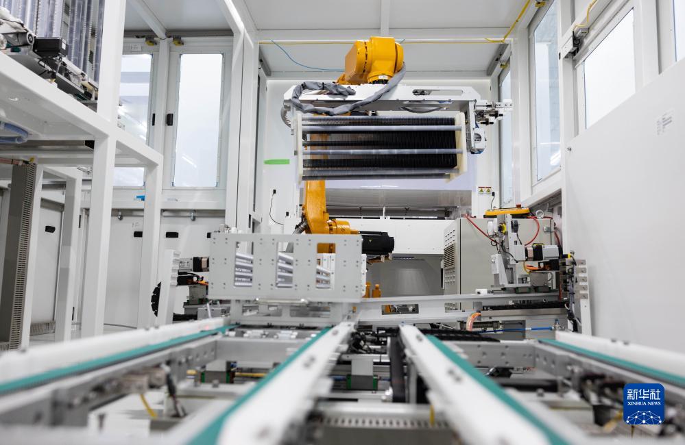 8月22日,在四川省丹棱縣經(jīng)濟開(kāi)發(fā)區的眉山璉升光伏8GW高效異質(zhì)結電池項目電池車(chē)間清洗制絨工序中,機械臂搬運硅片。