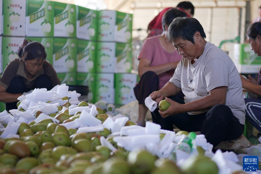 8月22日,在吳橋縣于集鎮吳橋縣華森果品種植專(zhuān)業(yè)合作社,村民們將剛采摘的梨進(jìn)行分揀包裝。