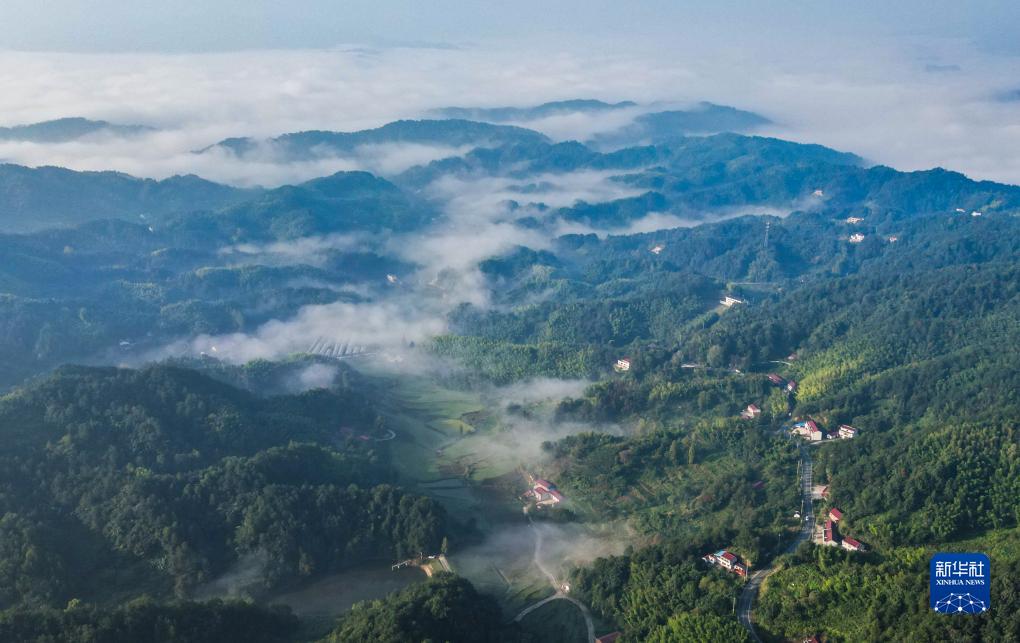 這是8月23日航拍的安徽省六安市霍山縣漫水河鎮附近的云海。