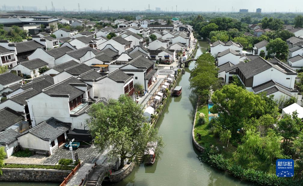 八里店鎮潞村古村落經(jīng)過(guò)改造已成為湖州鄉村旅游首選地(無(wú)人機照片,8月23日攝)。