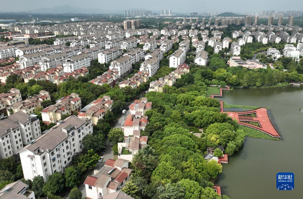 八里店鎮環(huán)境優(yōu)美的農民安置社區(無(wú)人機照片,8月23日攝)。