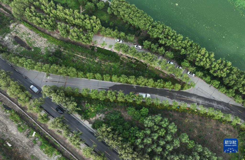 8月22日拍攝的唐山市豐南區城區通往南孫莊鎮的唐津運河景觀(guān)路(無(wú)人機照片)。