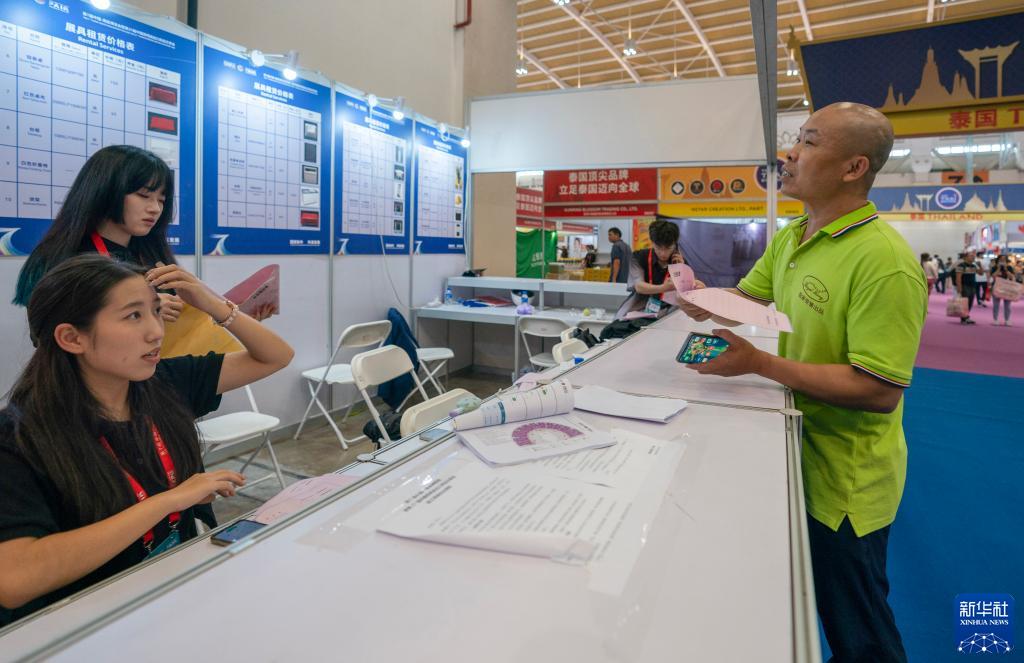 陳杰在昆明滇池國際會(huì )展中心內的服務(wù)臺領(lǐng)取提貨單(8月18日攝)。新華社記者 陳欣波 攝