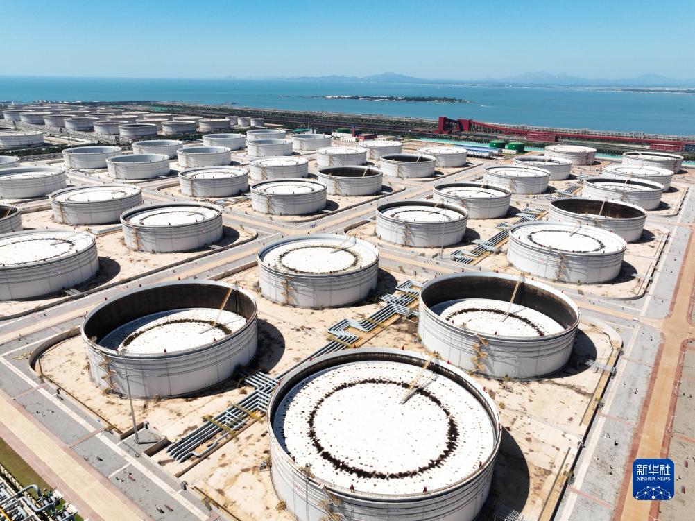 這是8月23日拍攝的山東港口青島港董家口原油商業(yè)儲備庫(無(wú)人機照片)。